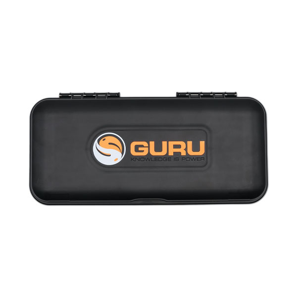 De Guru Tackle Adjustable Rig Case is een opbergsysteem voor onderlijnen met verstelbare pennen. De pennen zijn verschuifbaar en vast te zetten op halve inch-intervallen. In de case zijn verhoogde meetpinnen aanwezig voor het afmeten van onderlijnen. De behuizing is voorzien van een waterdichte afdichting, magnetische sluiting, stevige scharnieren en labelvlakken aan de buitenzijde.