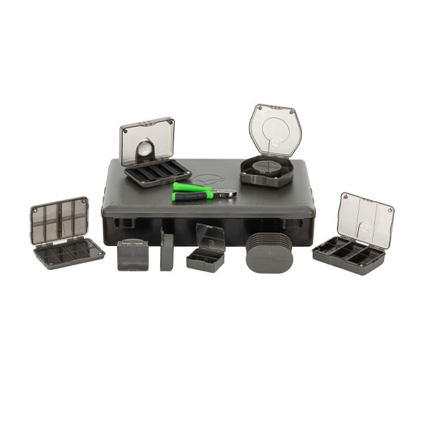 De Korda Tackle Box Large Collection is een samengestelde set met een Large Tackle Box en bijbehorende opbergcomponenten. De tackle box is uitgevoerd met 25 compartimenten in de deksel met transparante klepjes en een geïntegreerd rigboard met groefbalk. Het hoofdvak heeft verstelbare tussenschotten en vaste wanden voor een flexibele indeling. De box is gemaakt van slagvast kunststof en sluit met magnetische sluitingen.