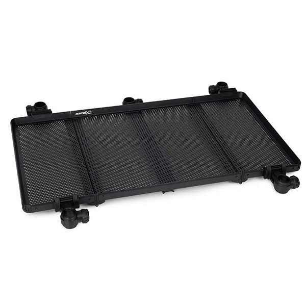 De Matrix Folding Side Tray is een inklapbare tray voor gebruik aan de seatbox. De tray is uitgevoerd met een geperforeerd oppervlak voor afvoer van water en voer en is compatibel met clip-on accessoires. De Matrix Folding Side Tray is geschikt voor 25, 30 en 36 millimeter ronde poten.