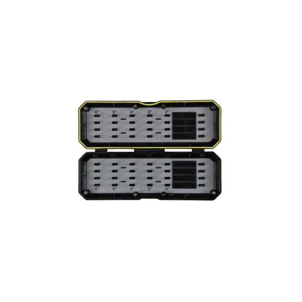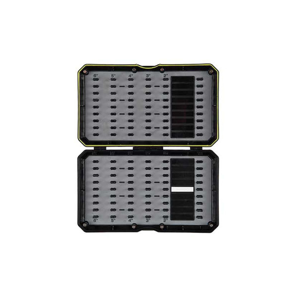 De Matrix Hooklength Storage Box is een onderlijnbox met interne liniaal en magnetische sluiting. De box is voorzien van een rubberen seal en interne bevestigingspinnen.