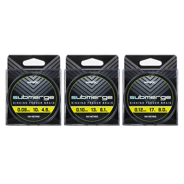 Submerge Sinking Feeder Braid van Matrix is gevlochten lijn dat speciaal voor de feedervisserij gemaakt is. Submerge Sinking Feeder Braid is mooi rond, sterk op de knoop en zinkt bovendien als een baksteen! Verkrijgbaar in drie diameters op een spoel van 150 meter.