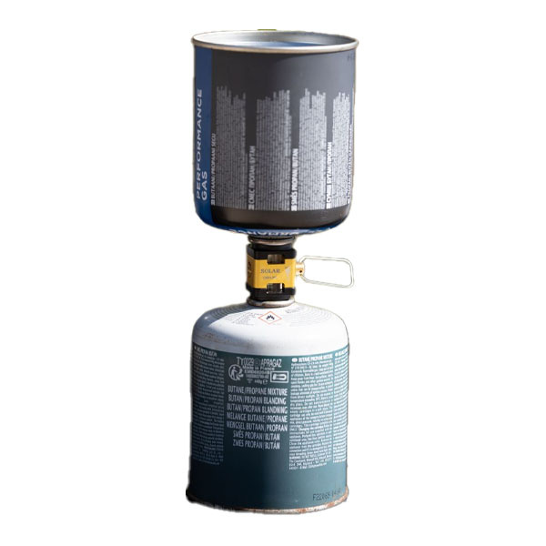 De Solar Gas Link Valve is een ventiel voor het efficiënt overzetten van isobutaanbrandstof tussen gasblikjes. Het ventiel is vervaardigd uit aluminium en uitgevoerd met messing fittingen en een transparant kijkvenster voor controle van het overdrachtsproces.