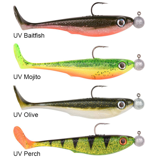 De Spro Iris The Boss To-Go is voorzien van een jigkop, hierdoor is deze shad direct klaar voor gebruik. De jigkop heeft een Gamakatsu HD jighaak en is voorzien van een gewicht van zink. De Spro Iris The Boss To-Go heeft dankzij de omgedraaide schoepstaart een verleidelijke, flankende actie.