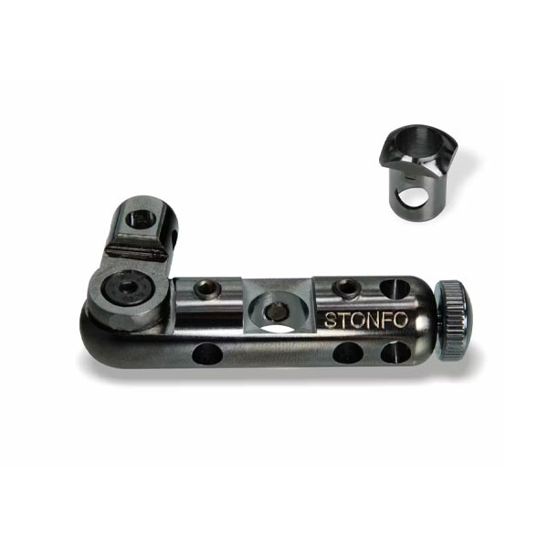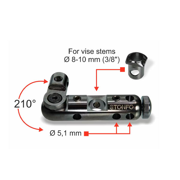Het Stonfo Joint Block is een klemblok dat op de vise wordt bevestigd en het gelijktijdig positioneren van maximaal vier accessoires mogelijk maakt. Het accessoire is geschikt voor vises met een steel van 8 tot 10 mm (3/8”) en wordt geleverd met een 8 mm adaptorbus en een inbussleutel.
