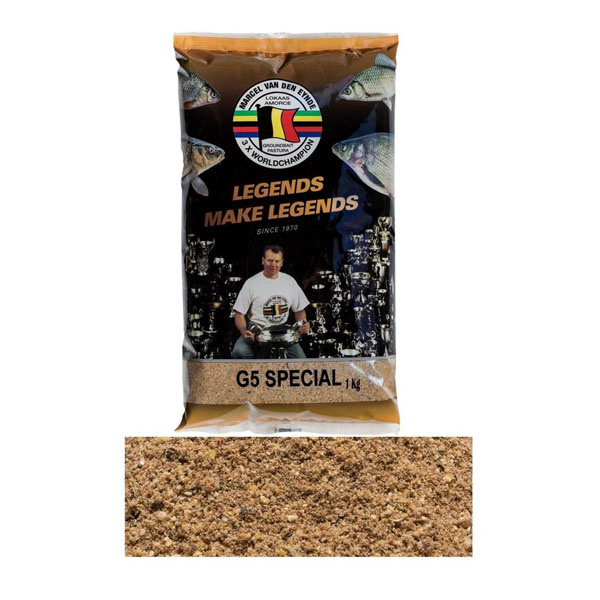 Van Den Eynde G5 Special is een variant van het welbekende G5 lokvoer en is voorzien van een kruidige geur. Dankzij de toevoeging van diverse kruiden is het voer perfect te gebruiken voor het vissen op voorn. Van Den Eynde G5 Special is geschikt voor het vissen op vijvers, kanalen en rivieren en kan indien gewenst ook gemengd worden met andere lokvoeders.