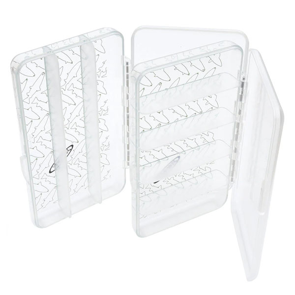 De Vision Tube Fly Box is een vliegendoos met fish camo print, bedoeld voor het opbergen van tubevliegen. De box is verkrijgbaar met drie of vijf compartimenten, waarbij de uitvoering met drie compartimenten meer lengte biedt voor grotere tubes en de uitvoering met vijf compartimenten geschikt is voor kortere tubes.
