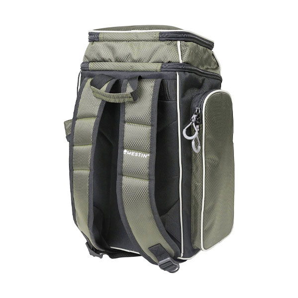 De Westin W2 Backpack is een ruime rugtas en beschikt over verschillende compartimenten voor het efficiënt opbergen van allerlei benodigdheden. De rugzak heeft een ruim hoofdcompartiment, vier zijvakken en wordt geleverd inclusief een Westin tacklebox (36 x 22,5 x 4,8 cm). De Westin W2 Backpack is gemaakt van waterbestendig, diamant geweven polyester en 600D zwart polyester met coating en heeft een verstevigde, waterbestendige bodem.